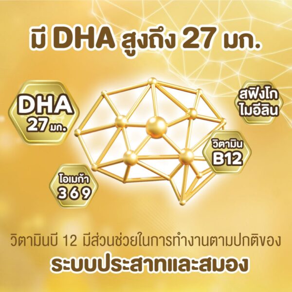 ・ดีเอชเอ 17 มก. โอเมก้า 3 (กรดไลโนลีนิก) 40 มก. โอเมก้า 6 (กรดไลโนลีอิก) 169 มก. โอเมก้า 9 (กรดโอลีอิก) 766 มก. โคลีน 9 มก. ทอรีน 15 มก. สฟิงโกไมอีลิน 5 มก. ฟอสโฟลิปิด 18 มก. ต่อ 1 กล่อง